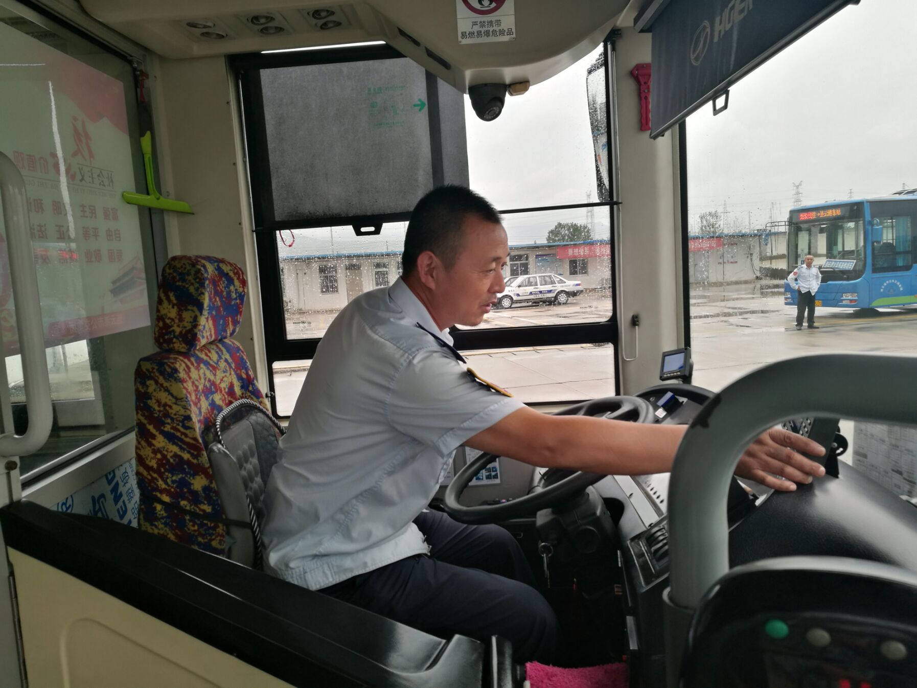 在平凡的岗位上,闫朝明师傅手握方向盘默默的坚守着自己的初心,用细心守护着乘客的平安,用微笑服务每一位乘客,让每一位乘客开心出门,平安到家,对他来说也是一种幸福。