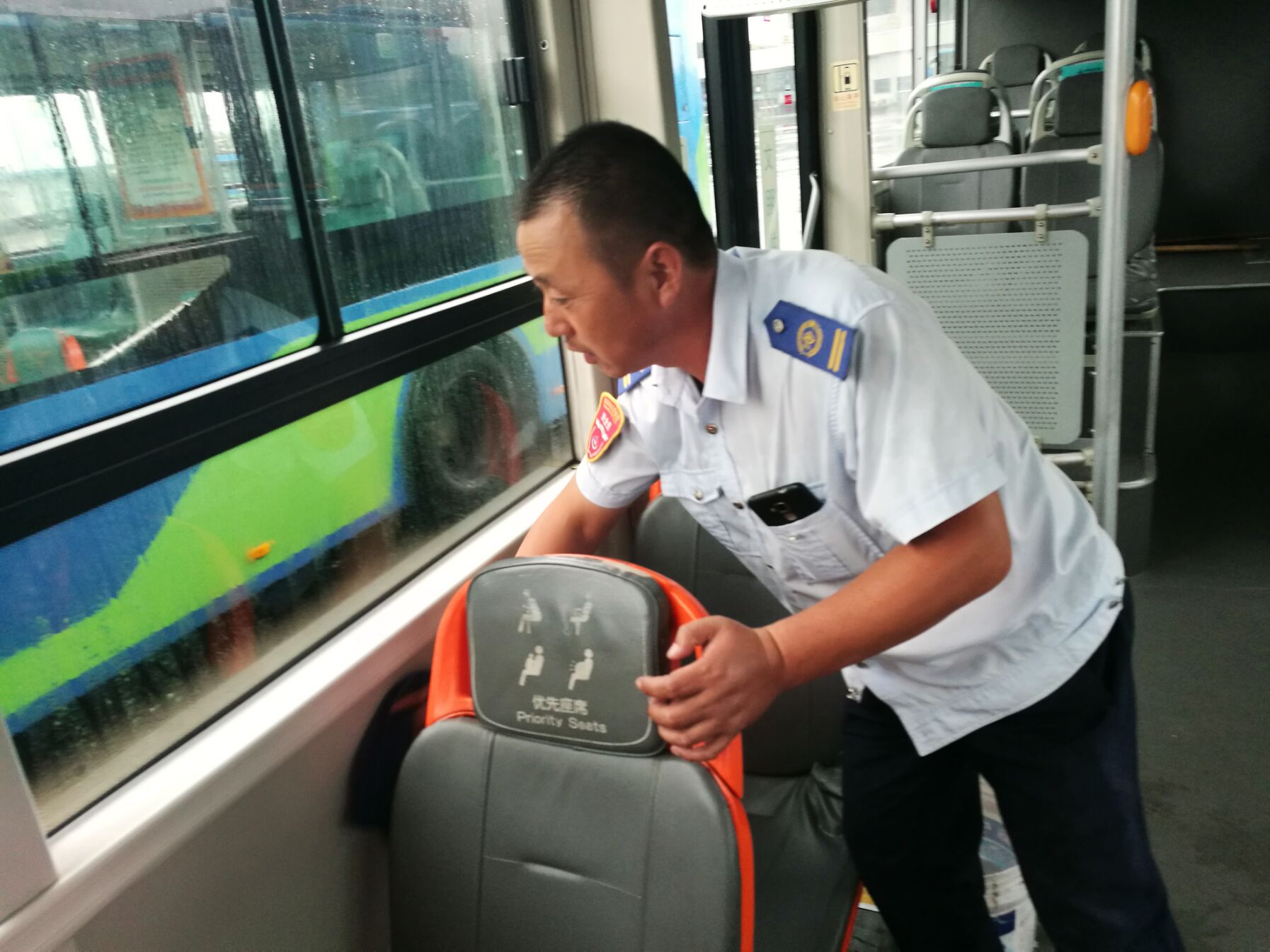 为了给乘客提供一个安全,干净,舒适的乘车环境,每天早晨,闫朝明师傅都会提前一个多小时来到东城分公司停车场,认真做好出车前的检查工作,查机油、查水箱、查皮带、查轮胎,每一项检查闫师傅都做的一丝不苟。收班后洗车,闫朝明却是认真清洗车辆打扫车厢,不放过任何一个卫生死角,针对行车中发现的车辆问题,他还会积极上报,协同机务修理人员及时修复,坚决不开“病车”上路。