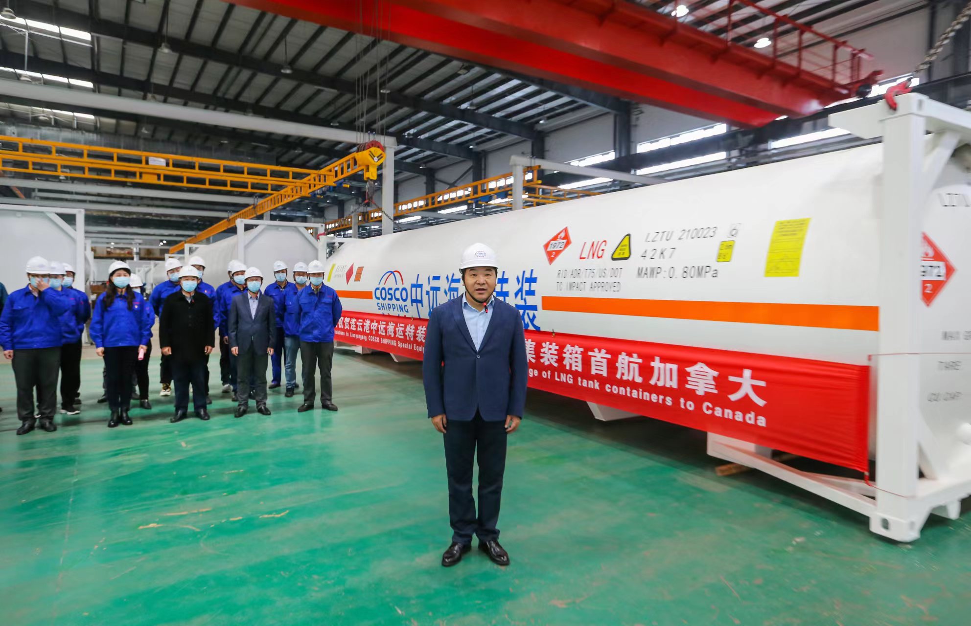 11月24日下午,交控物流时博app最新版下载,时博(中国)LNG罐式集装箱首航加拿大发运仪式在中远海运特装公司成功举办,交控物流时博app最新版下载,时博(中国)总经理张国兴、副总经理左志军、总经理助理王高林及相关部室负责人、特装公司部分领导班子人员参加。