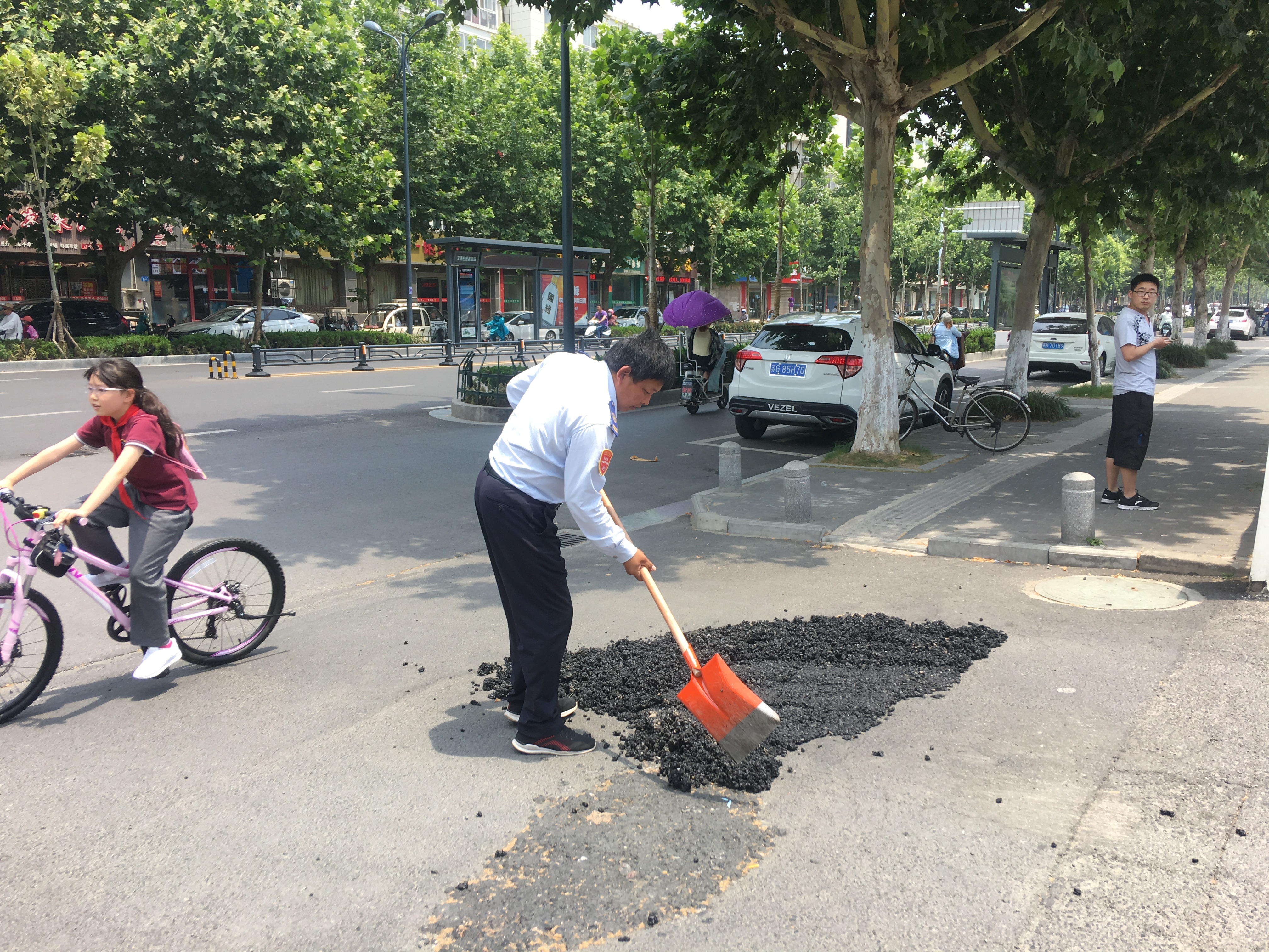 骄阳似火,烈日当头,却有一个身影在不停的忙碌着,汗水顺着额头一滴滴滑落,举着铁锹铺设路面的手臂却没停歇过,他就是“公交小哥”——陆启正。