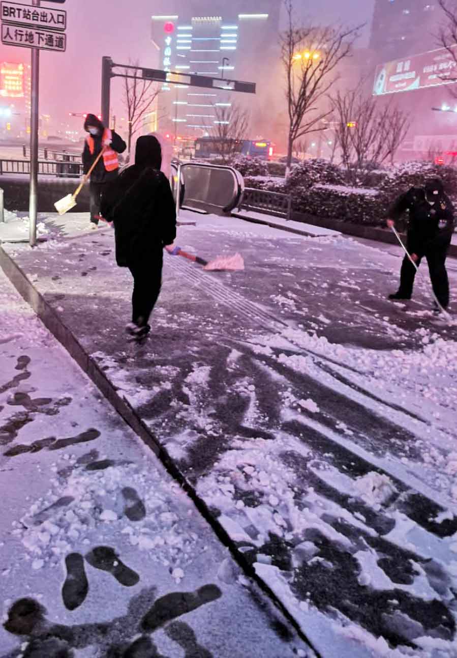 2月15日下午,我市突降雨雪,时博app最新版下载,时博(中国)各单位迅速启动恶劣天气应急保障预案,全面做好恶劣天气下疫情及应急管控工作,坚守防疫和运营保障一线。