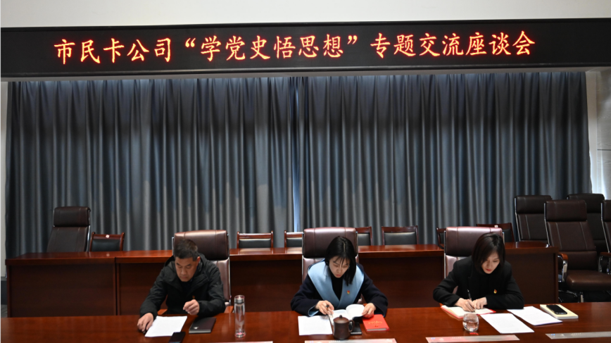 为加强党员干部党史学习意识,促进党史理论学习落地落实,4月21日下午,市民卡公司党支部组织开展“学党史悟思想”专题交流座谈会,支部书记叶星妍主持,支部委员曹新军、马一骄及全体党员参加会议。