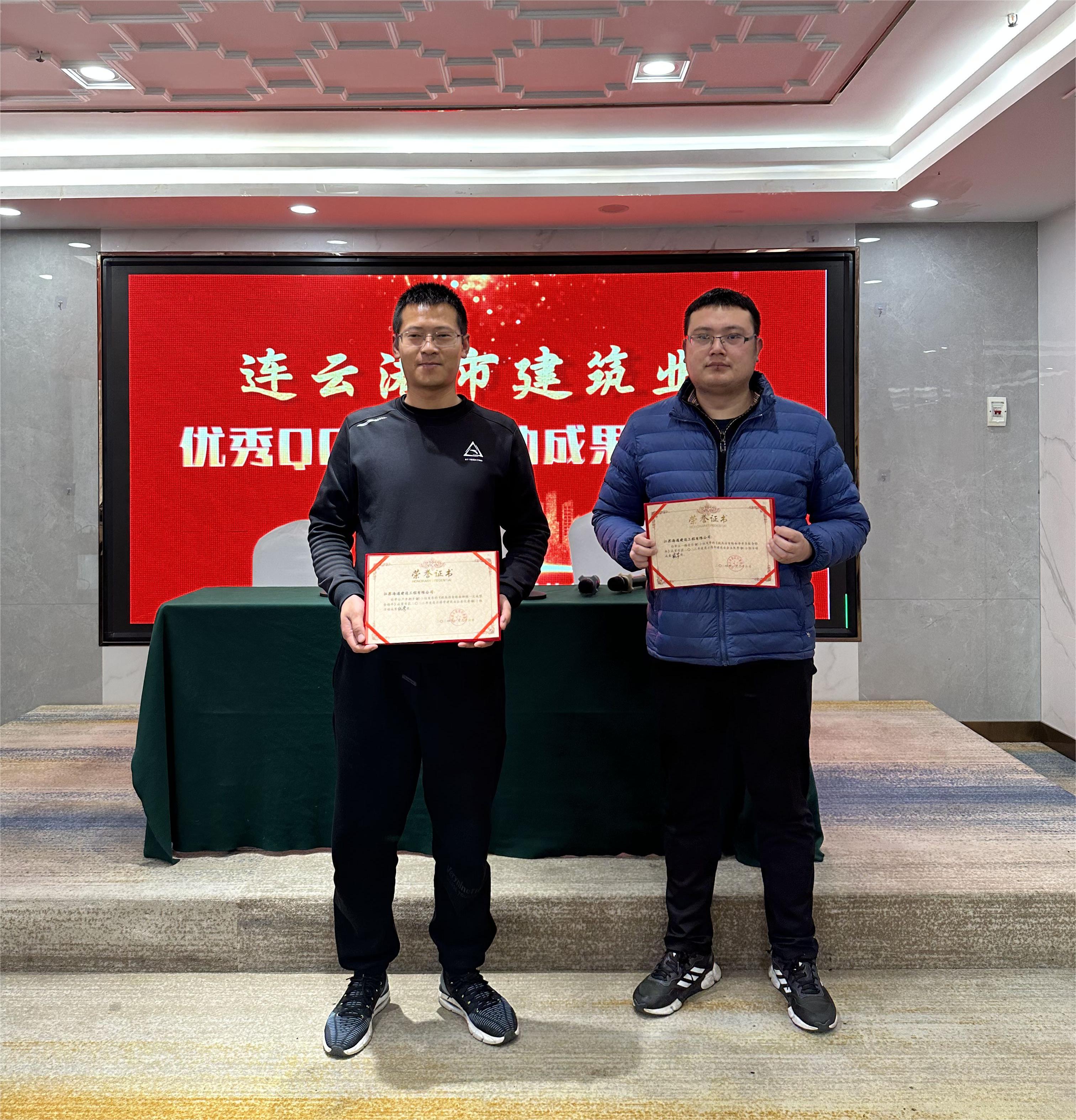 近日,连云港市建筑行业协会在海州区召开2023年度连云港市建筑业优秀QC成果发布会,会上进行QC成果现场发布,由专家组打分、点评,同时颁发2023年度连云港市建筑业企业优秀QC成果奖状。江苏海建公司一路有你QC小组的《提高沥青路面渗水系数合格率》获得2023年度连云港市优秀QC小组活动成果二等奖,只争朝夕QC小组的《提高沥青路面摊铺一次成型合格率》获得2023年度连云港市优秀QC小组活动成果优秀奖。