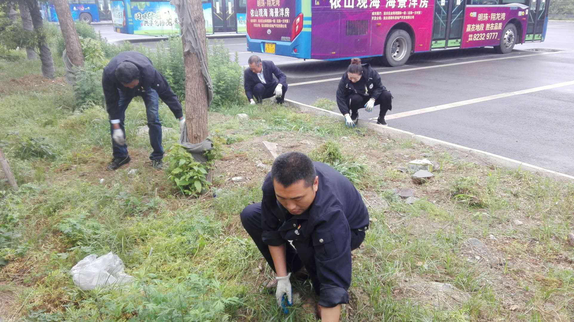 由于天气慢慢炎热,大港路电站充电工作场所条件比较恶劣,充电桩旁杂草丛生,存在着各种安全隐患。东区在职党员接到劳动任务指令后迅速投入到杂草清除工作中去。被同志们亲切的称呼为"忙劳骨"的老党员陈玉川身先士卒,只见他瘦弱的身影在草丛中来回穿梭,动作娴熟的将杂草拔除,同时他还时不时的叮嘱身旁的同志注意小心毒虫叮咬。作为东区唯一的一名女性党员毕玉同志也不甘落后,处处与男同志较劲",在劳动过程中她"不怕脏、不怕苦",由于此时天空还下着雨,这时已分不清她的脸上是雨水还是汗水,徐俊德同志看到后,叫她休息一下她擦了擦脸说:“不用,作为共产党员这点苦怕什么"!话音未落她又投入到劳动中,此刻她已成为劳动现场一道亮丽的风景线,用实际行动诠释着"巾帼不让须眉"的含义,同时也体现了一名女性党员不忘初心,勇于担当的高贵品质。共产党员陈玉德同志作为一名退伍老兵,在劳动现场充分发扬了部队"召之即来、来之能战、战之能胜"的优良传统,只见他在蒙蒙细雨中充分发挥体能优势,将现场各同志拔起的杂草一堆堆归拢清除,并不时的将杂草中大石块清理掉,防止其他同志在劳动过程中绊倒发生安全事故,被同志们亲切的称呼为人体搬运机”。