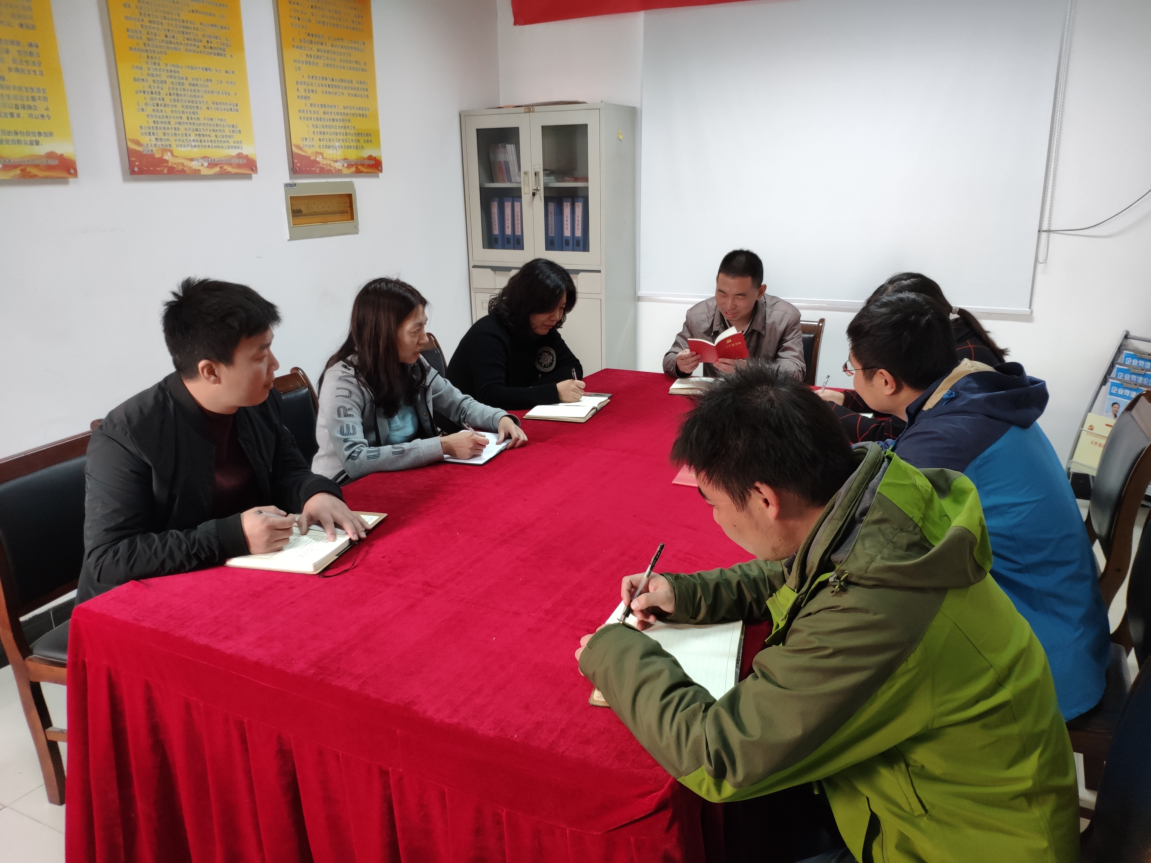 会上,在林建明的带领下,共同学习了《中国共产党章程》,《党章》是中国共产党无产阶级政党以马克思主义党的学说为指导,结合党的建设的实践而制定的党的生活准则和行为规范,是加强的建设的强有力的武器。随后,林建明带头发言,其他党员同志逐一发言,紧扣党章党规和“18个是否”,逐条逐项进行对照检查,既实实在在回答有没有问题,又对存在问题进行对照检查和深入剖析