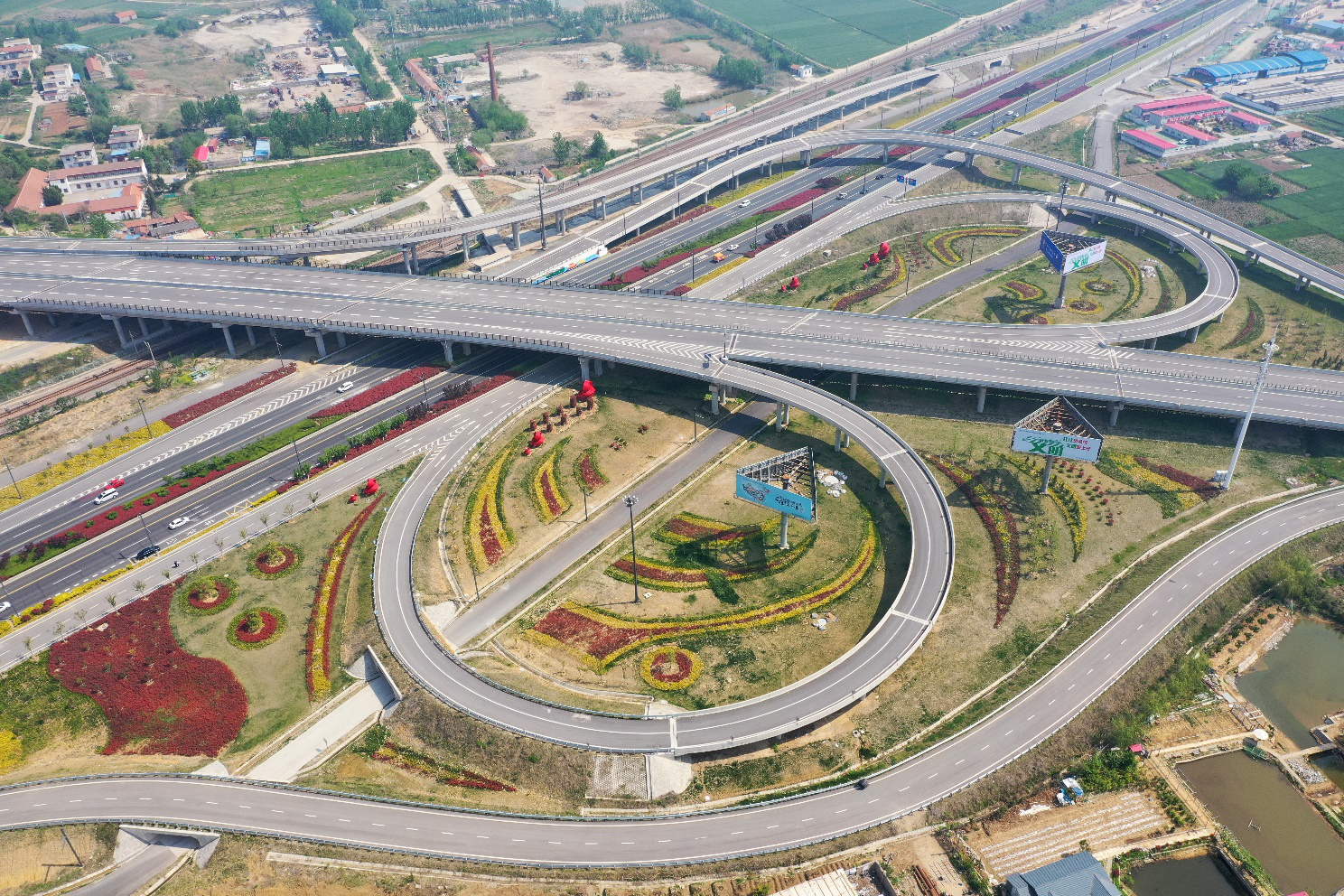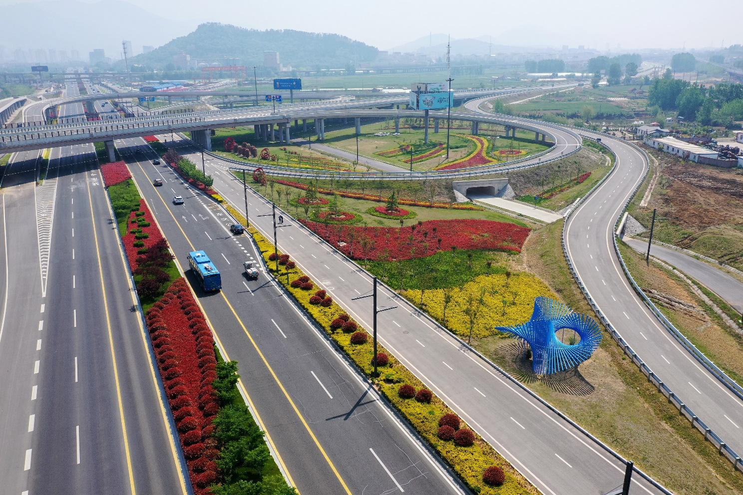 朝阳互通景观园是交通时博app最新版下载,时博(中国)承建的242省道朝阳互通项目的配套工程,于2019年建成,经过今春的修剪美化,搭配周边设置的数十个造型各异的雕塑,如今这里的景色更加迷人。