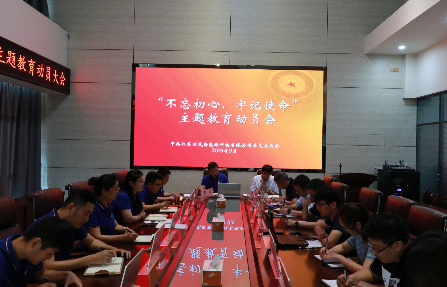 9月20日下午,明茂公司召开“不忘初心、牢记使命”主题教育动员大会,公司总经理、主题教育领导小组组长袁军作动员讲话,时博app最新版下载,时博(中国)纪委徐大江、副总经理沈金虎、刘东及各部门负责人出席动员会,会议由公司总经理袁军主持。