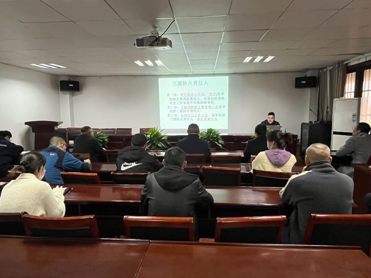 此次培训特别邀请到市业安消防中心教员董海涛进行讲授,在培训会上,董教员从灭火器操作、火灾成因、火灾现场逃生技巧、生活常用电器使用规范和消防安全要求等培训内容方面进行了详细的理论讲解,并通过现场互动的方式介绍了各类消防器材的使用方法,使所有参训人员更加深入地了解了火灾成因与防控办法,全面提高了对消防安全工作重要性的认识。