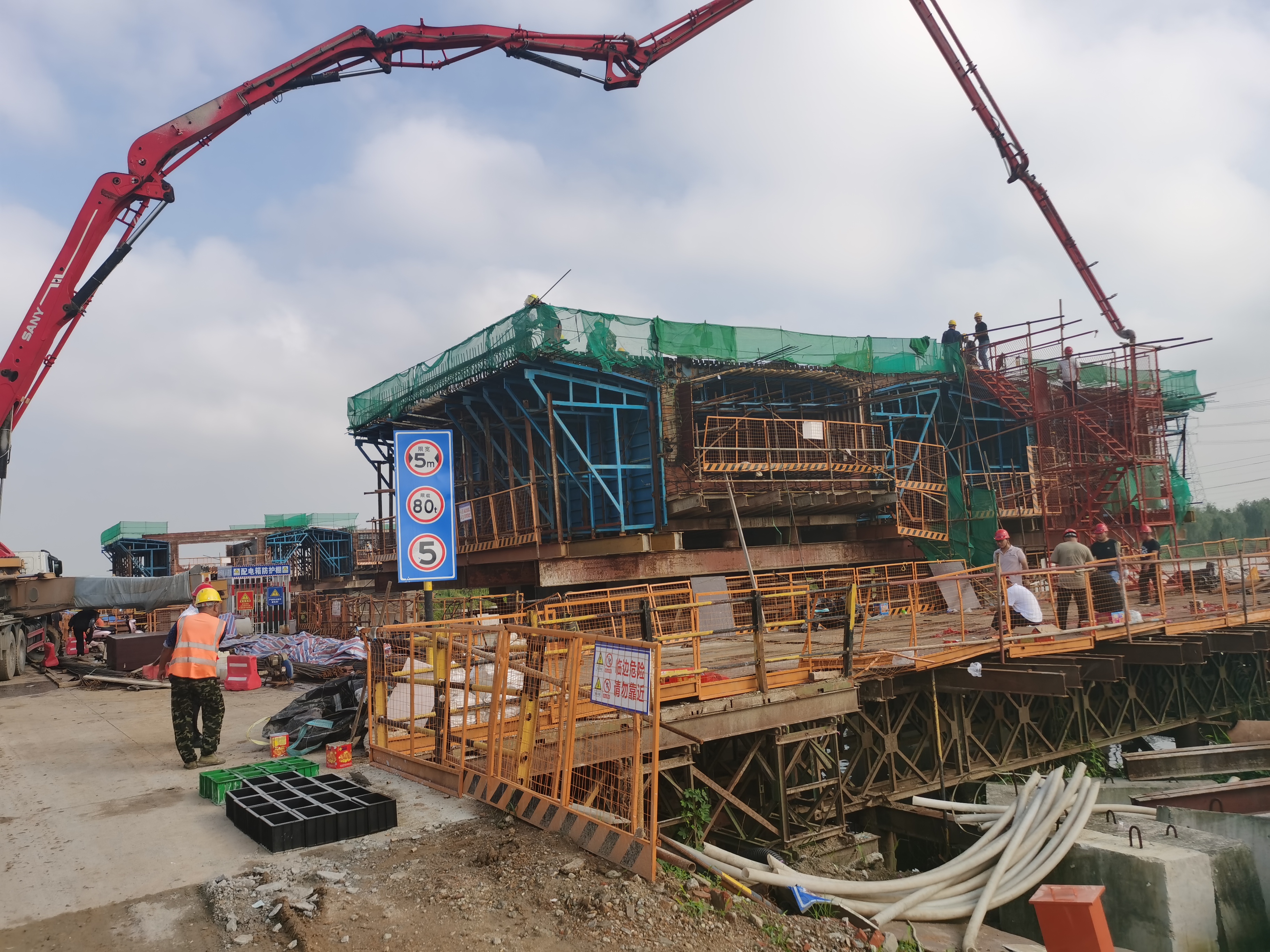 7月31日上午7时起,在江苏海建公司402省道赣榆南环段路基桥涵工程施工现场,经过6小时的持续作战,随着上部结构变截面连续箱梁首件0#块变截面箱梁的成功浇筑,开启了桥梁上部结构变截面预应力箱梁施工的“大门”,标志着桥梁施工进入新阶段。