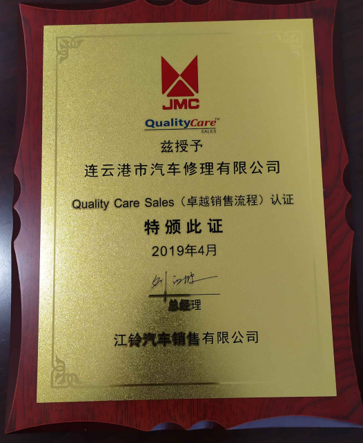 自2018年12月下旬修理公司通过江铃汽车QCS1.5销售流程认证以来,2019年4月20日修理公司再获喜讯,公司顺利通过江铃汽车销售有限公司QCS(卓越销售流程)认证。