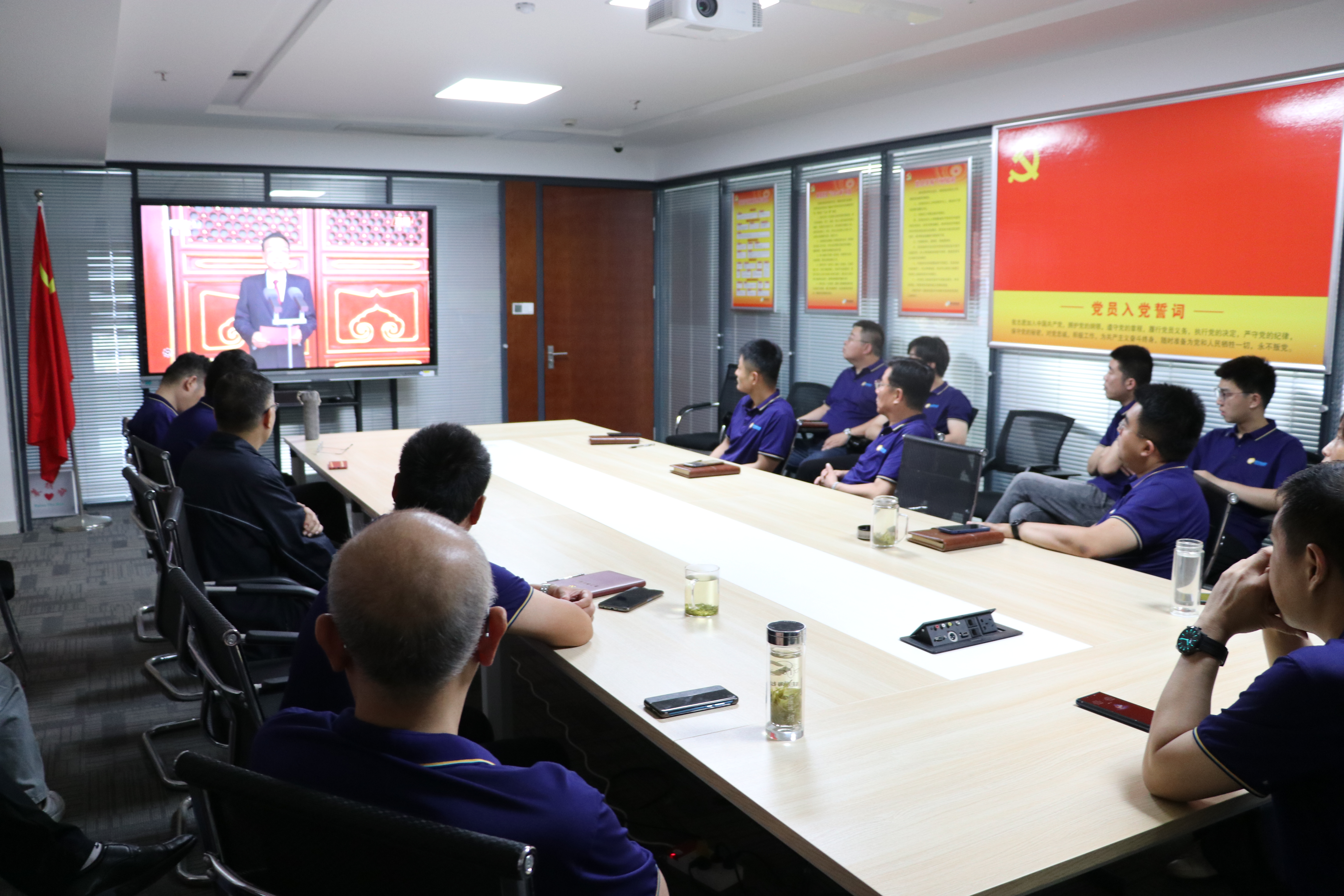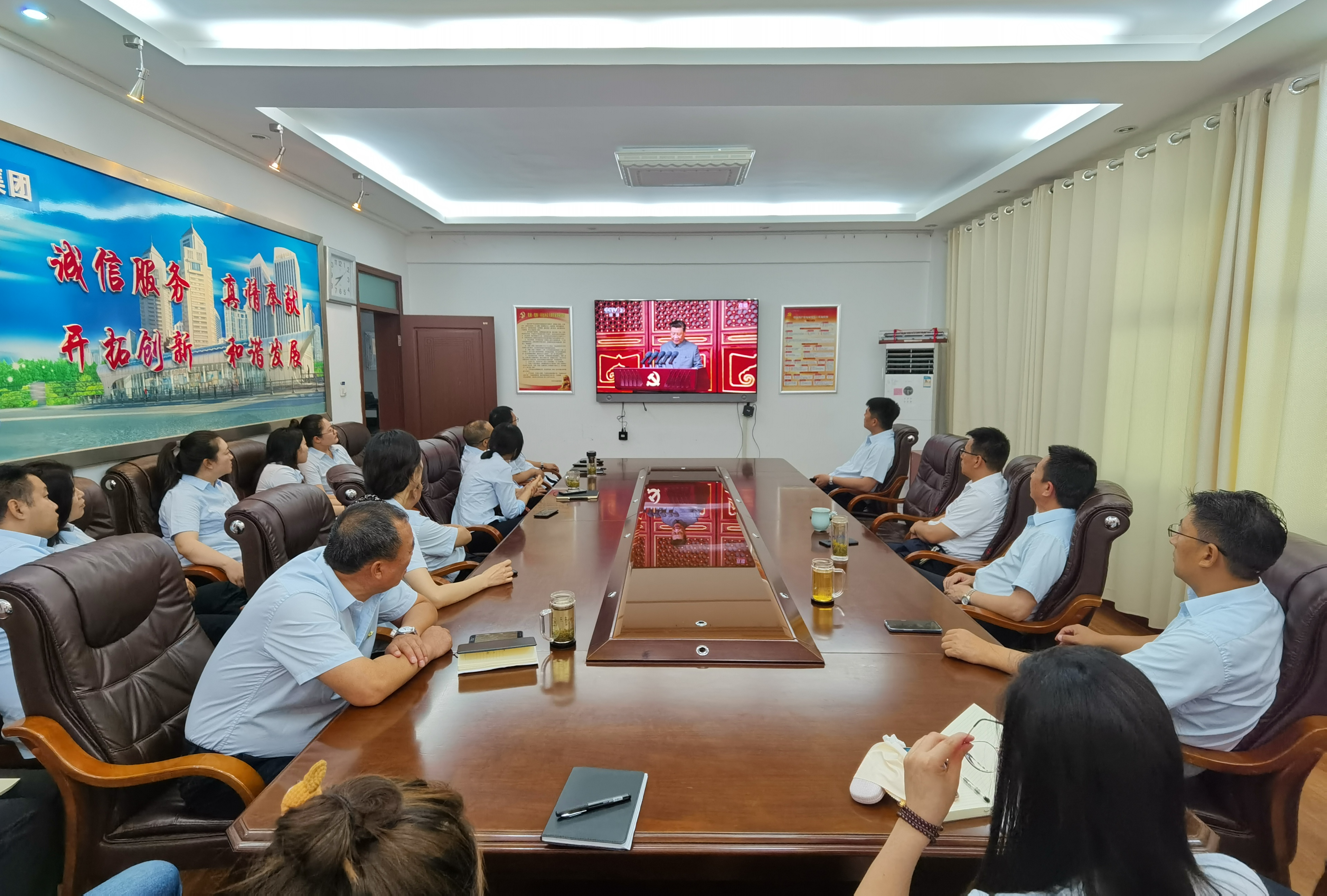 7月1日上午8时,庆祝中国共产党成立100周年大会在北京天安门广场隆重举行,中共中央总书记、国家主席、中央军委主席习近平发表重要讲话。时博app最新版下载,时博(中国)党委组织全体党员职工,以集体收看、生产经营现场小组收看、行动不便党员上门陪学等方式,收看大会盛况,聆听习近平总书记在大会上的重要讲话。