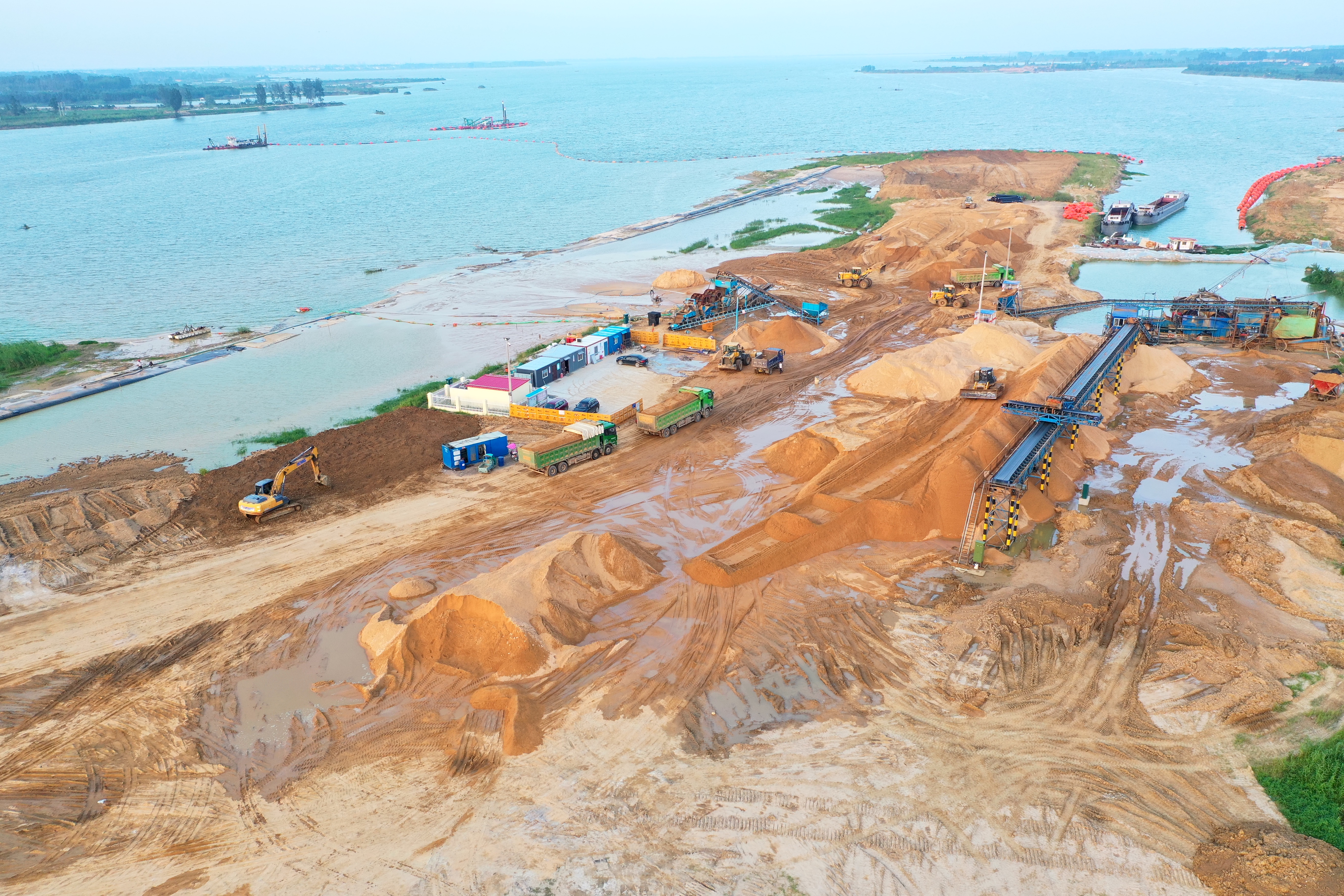 与此同时,更高的目标业已布局设定。至本月底,石梁河水库综合开发利用工作将实现重大突破。生态修复方面,将实现环湖道路东海侧全部贯通,赣榆侧东方红村段全线通车。基本完成西朱范河下游入库河口整治,启动打造净水湿地、景观湿地、岸线涵养林;采砂方面,将新增多处采砂点位,全面提升产能,全力冲刺1-2万吨/天,初步实现规模量产;渔业养殖方面,将启动建设高标准示范区,生产养殖区域实现网箱下水200个,养殖面积约5万平方米,投放鱼苗10万尾。休闲观光区现场作业将全面展开。