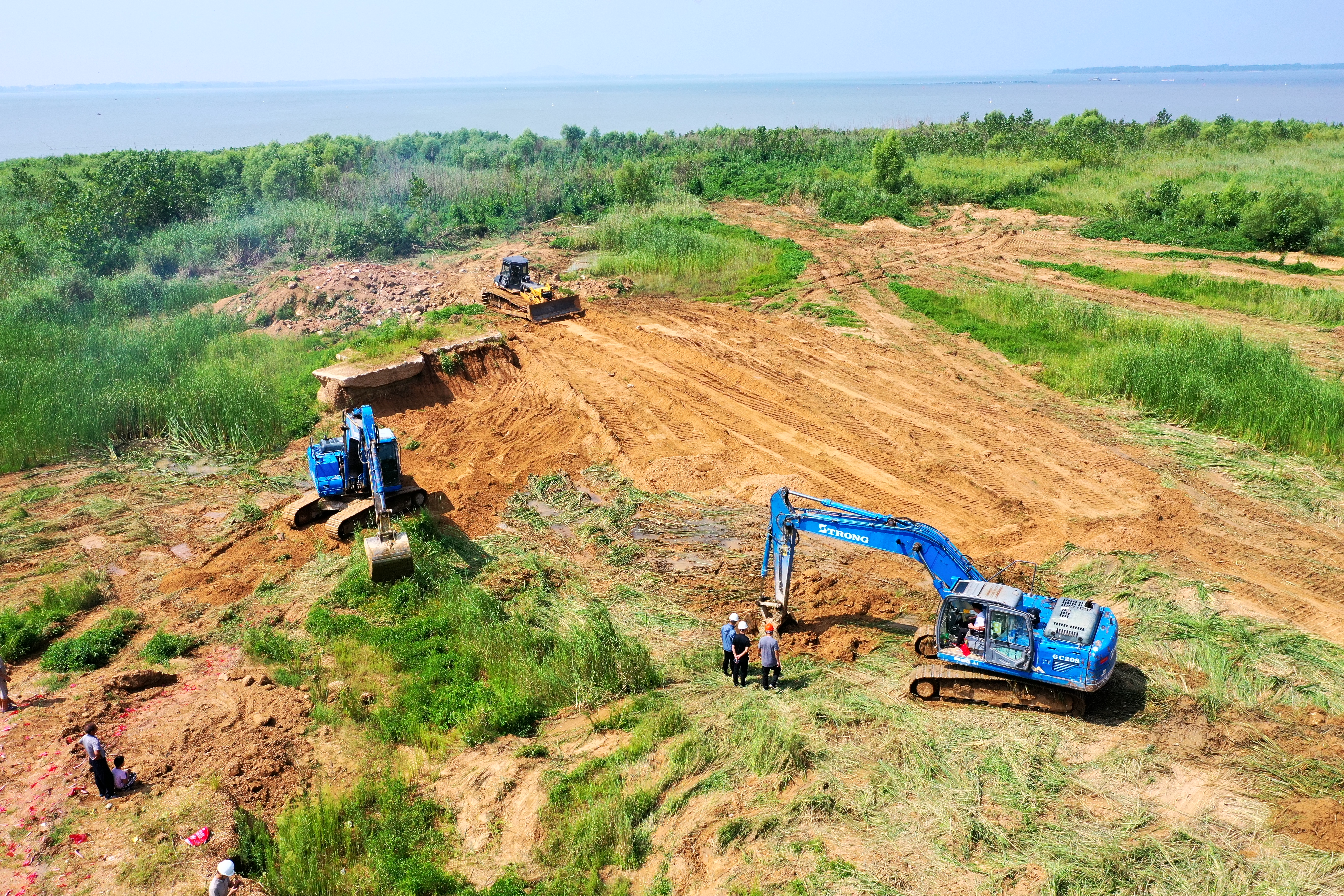 截至目前,生态修复已完成环湖道路建设46公里,栽种苗木26万棵,实现绿化面积达350万平方米。正在开展石门头河、西朱范河、新沭河等3条入库河口底淤清理工作;采洗黄砂产能已逾3000吨/天,正在全力推进作业设备采购建造、实现规模量产;渔业养殖码头建设已破土动工,网箱建设及鱼苗采购工作正在紧锣密鼓推进当中。