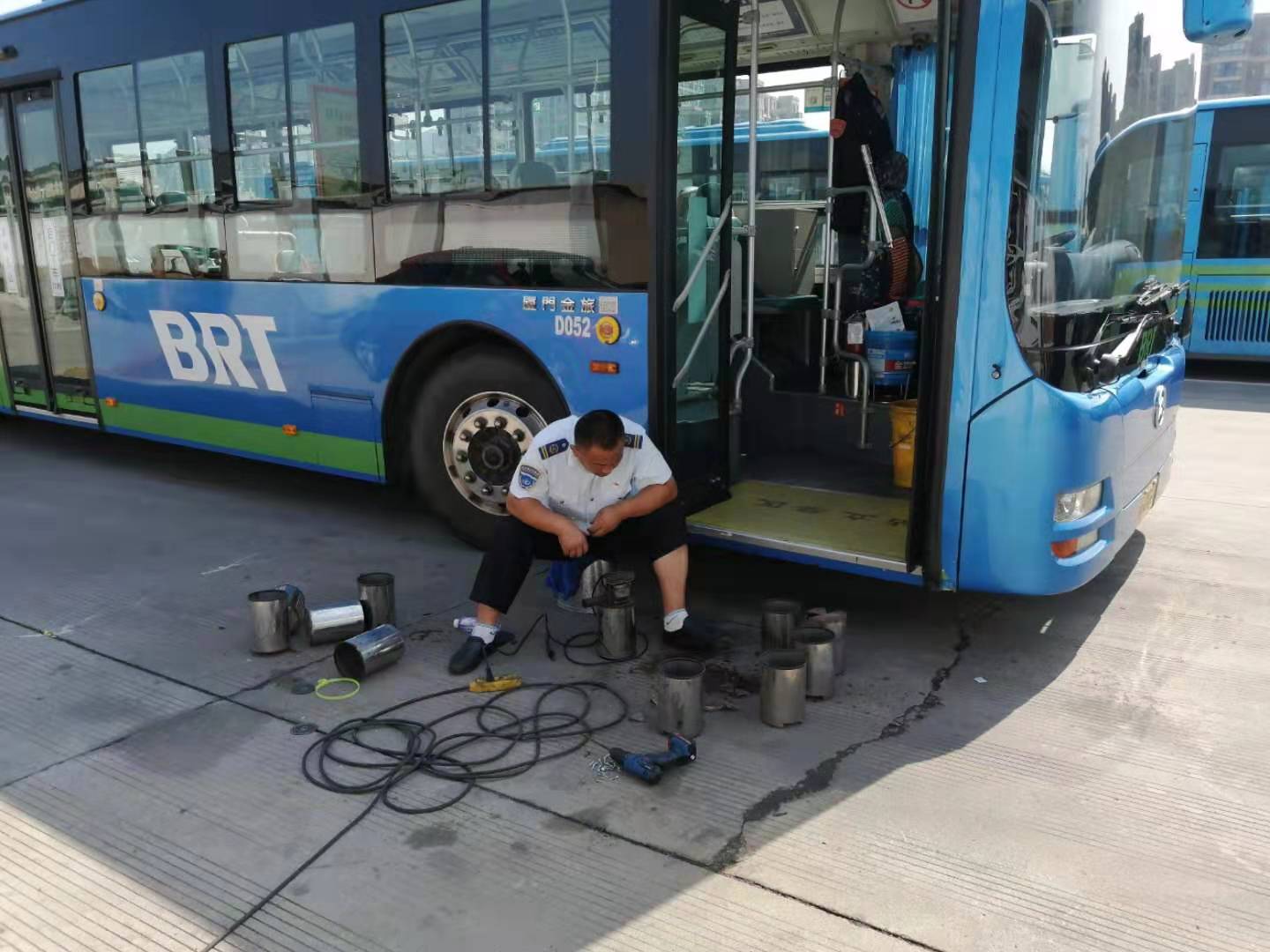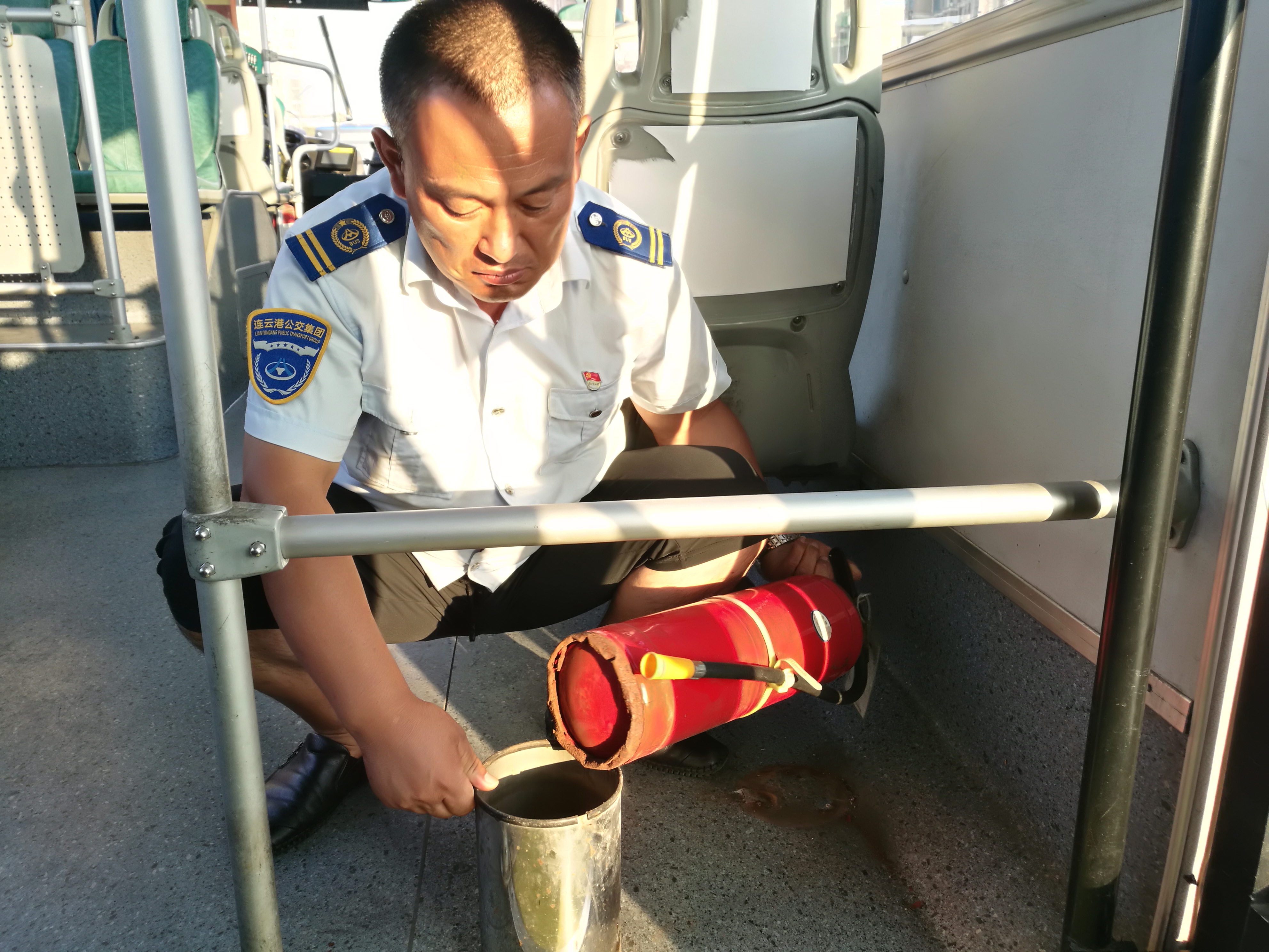 公交车是人员密集的场所,在公交车上配置灭火器是为了保护车辆与人员安全的一项重要措施。公交时博app最新版下载,时博(中国)快速公交事业部在大检查中偶然发现,纯电动车车载灭火器的底部有不同程度的生锈腐蚀,为了灭火器在紧急情况下能够发挥应有的作用,只能对一些底部腐蚀严重的灭火器进行更换。