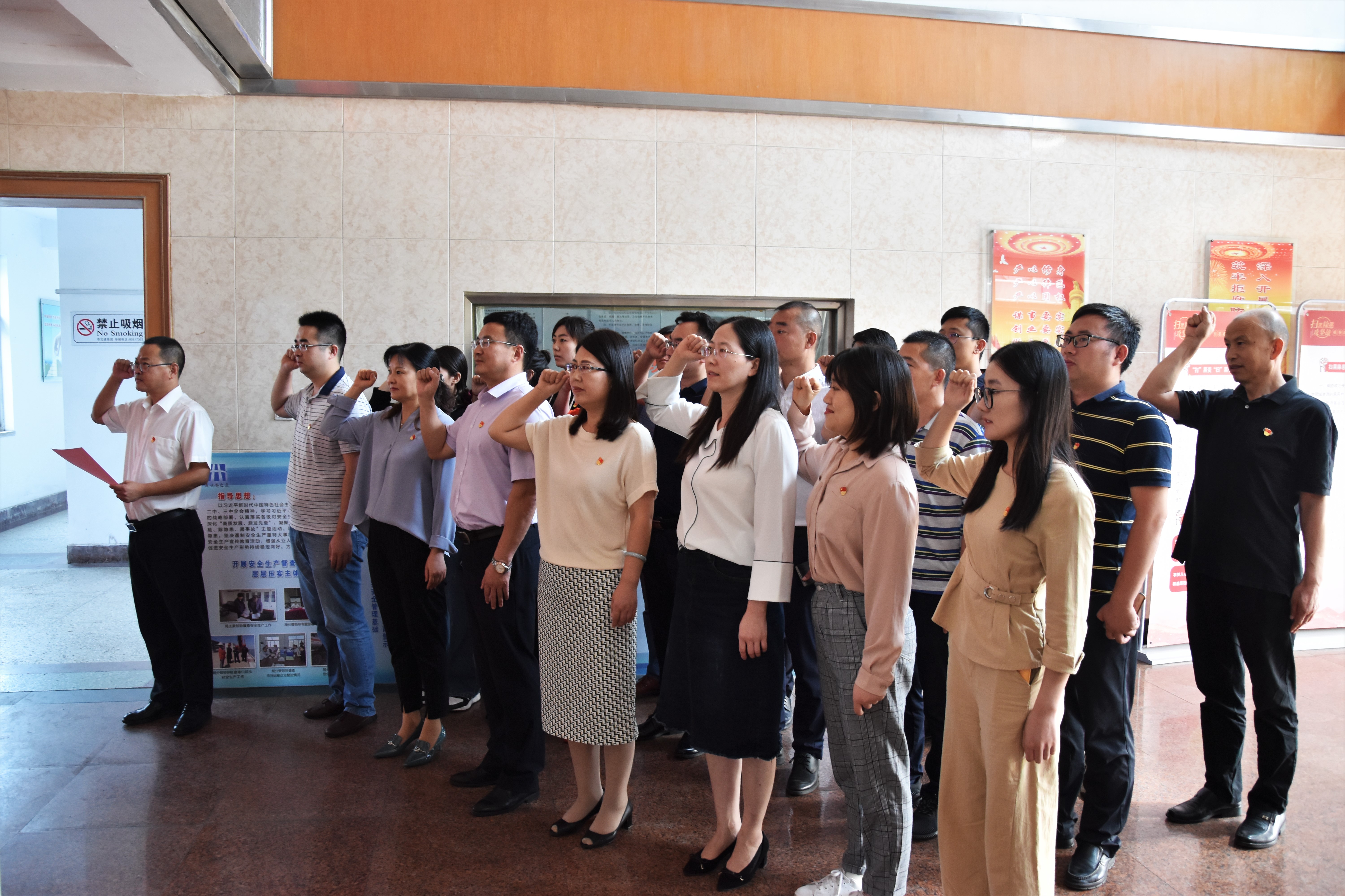 最后,总经理王梁洲带领全体党员重温入党誓词,全体党员面对鲜红的党旗,郑重举起右手,再一次向党做出庄严的承诺,重忆当年的坚定信念和入党初心,汲取澎湃的进取激情和为党奋斗的精神力量。