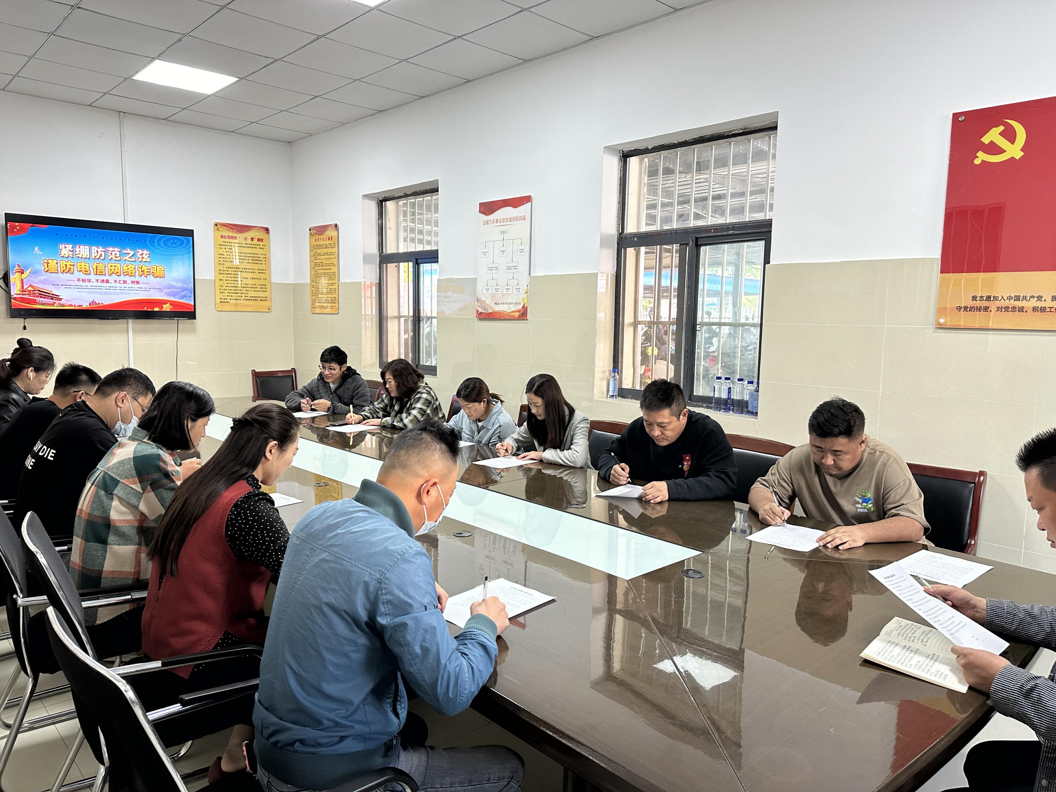 出租汽车事业部经理成龙对本次签订工作提出两点要求:一是率先垂范,干部职工要以身作则,带头签订。二是组织宣传到位。干部职工既要熟知签订工作的细则,也要把承诺书的内容宣传到位。同时就电信诈骗的特点、种类、危害性及防范常识进行详细宣讲,现场要求参会人员下载注册国家反诈中心APP,逐一签订承诺书。签订承诺书后,要求大家要起到反诈行动我带头的作用,在做好自身防范的同时,还要积极向周围的亲人、朋友以及平时独自在家的老人做好宣传,以免受骗。