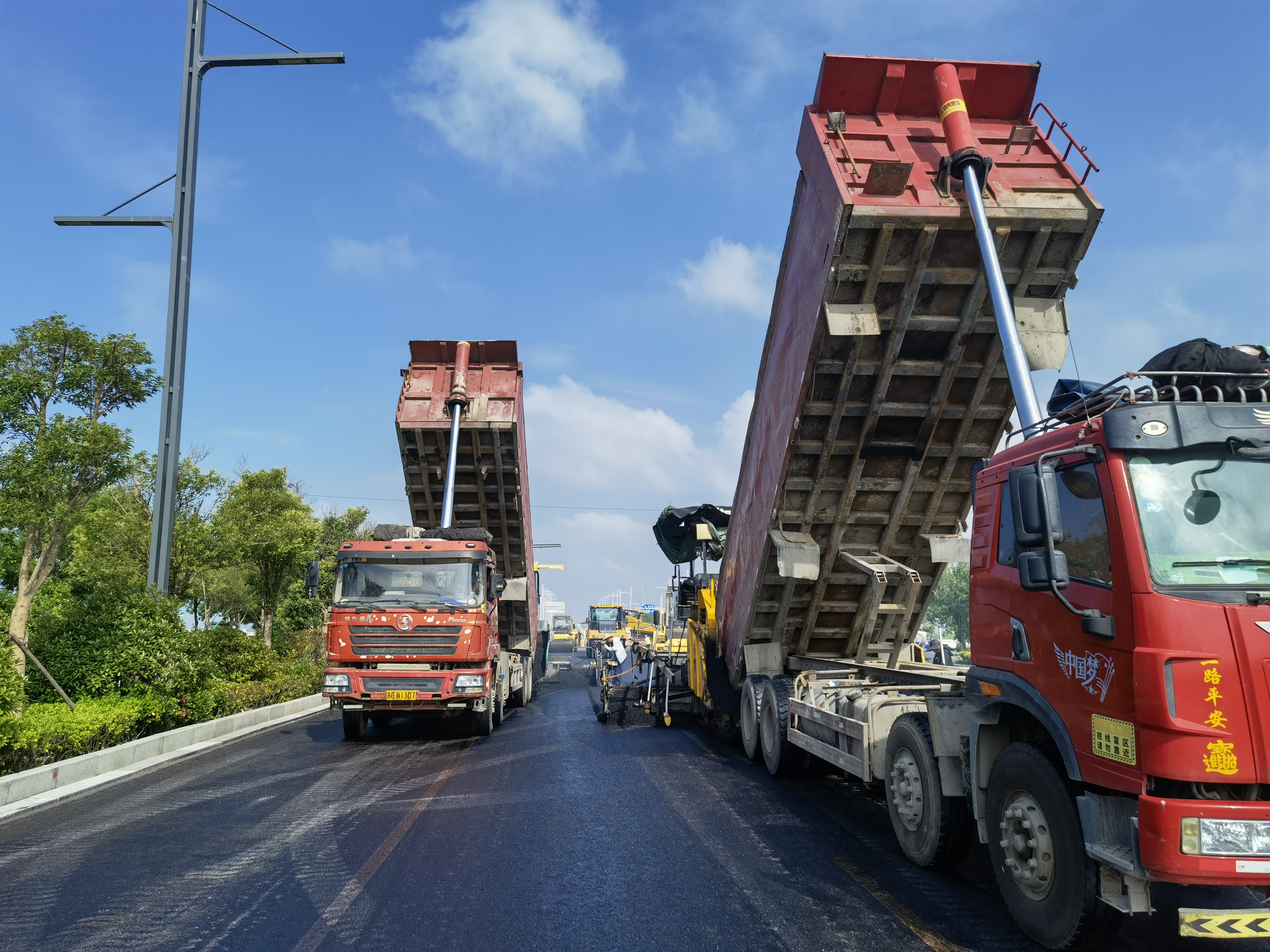 江苏海建公司园博园外围环境整治提升(徐新路)右幅沥青摊铺完成