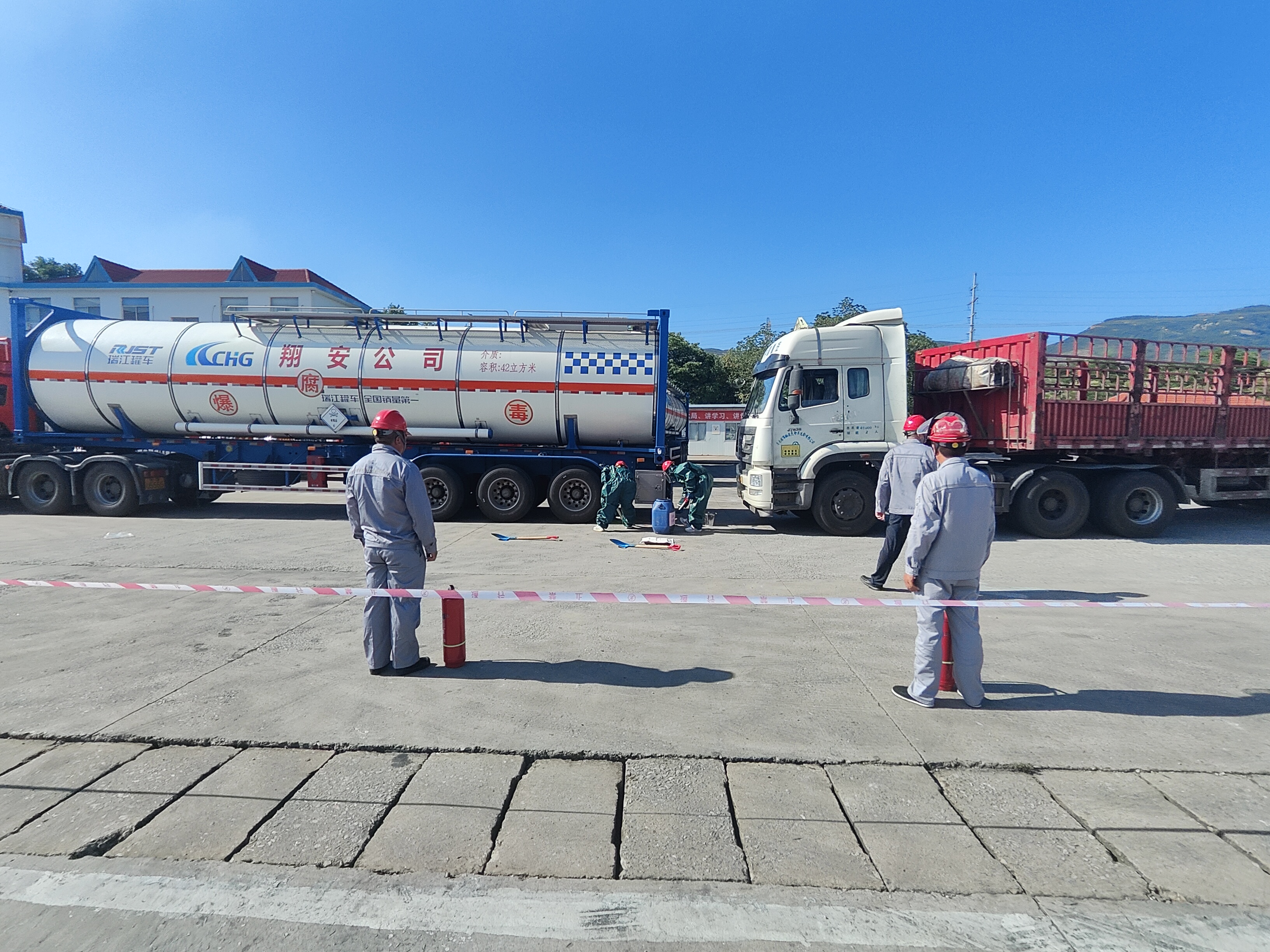 6月30日下午16时,在翔安公司停车场地正式开展危险品运输车辆被追尾致货物(苯酚)泄漏应急处置演练。本次应急演练以途中一辆普货车辆与危化品运输车碰撞发生追尾碰撞事故,造成危化品货物苯酚泄露为背景展开。面对事故险情,翔安公司严格按照《事故应急处置预案》要求报告、救援,立即响应启动应急处置预案,第一时间派出公司应急救援组人员赶赴现场施救。到达事故现场后,救援人员按分工职责,各司其职,进行事故现场开展应急处置救援,所有流程工作有序、衔接默契、密切配合,现场指挥员当机立断,指挥得当,参演人员精神饱满,遵守纪律 “一切行动听指挥”,圆满完成了危险品运输车辆被追尾致货物(苯酚)泄漏应急处置演练。