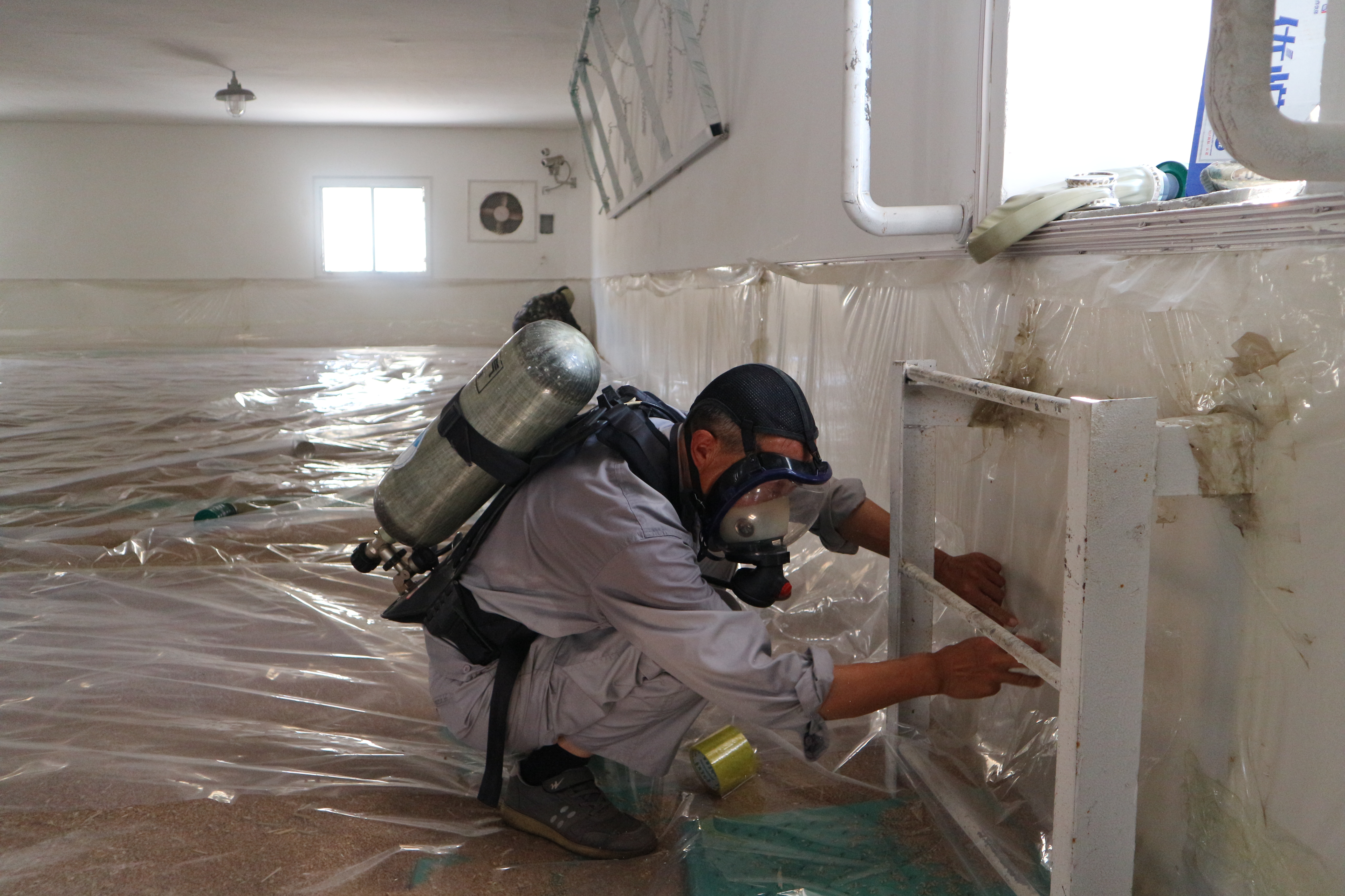 8月16日下午,熏蒸人员在和茂公司有关负责人的统一安排下,按照国家粮食局发布的相关标准和规范进行磷化铝规范化熏蒸作业。此次熏蒸总面积达到17181平方,共9个仓房。